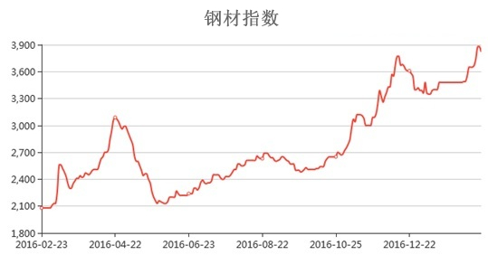 2016年2月底至2016年12月底國(guó)內(nèi)鋼鐵西本指數(shù)圖表