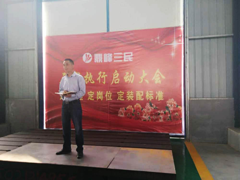 大會(huì)伊始,李總首先發(fā)表致辭,宣布三民重科“三定”正式啟動(dòng)執(zhí)行,并對(duì)“三定”內(nèi)容進(jìn)行了宣導(dǎo)。“定流程、定崗位、定裝配標(biāo)準(zhǔn)”即“三定”政策試執(zhí)行一個(gè)月以來(lái),切實(shí)有效增強(qiáng)了全員的使命感和責(zé)任感,作為企業(yè)管理基礎(chǔ)性工作中重要的一環(huán),起到了積極作用。李總要求,各職能部門(mén)要繼續(xù)嚴(yán)格貫徹執(zhí)行“三定”政策,在原有基礎(chǔ)上發(fā)現(xiàn)問(wèn)題,改進(jìn)不足,確保高質(zhì)高效的完成生產(chǎn)經(jīng)營(yíng)工作。