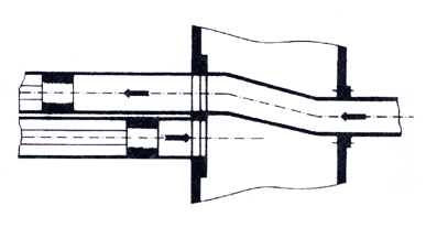 當(dāng)混凝土活塞(8)后退至行程終端時(shí),觸發(fā)水箱3中的換向裝置4,主油缸1、2換向,同時(shí)擺動(dòng)油缸12、13換向,使分配閥10與混凝土缸6連通,混凝土缸5與料斗連通,這時(shí)活塞7后退,8前進(jìn)。如此循環(huán),從而實(shí)現(xiàn)連續(xù)泵送。