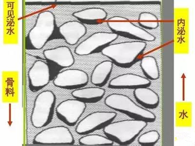 通俗地講,就是水泥混凝土中顆粒級(jí)配不合理,大直徑的顆粒比例比較大,使得水分不能夠均勻穩(wěn)定地分散到顆粒間的空隙里,在混凝土運(yùn)輸、振搗、泵送的過(guò)程中,水泥和骨料沉降,在混凝土凝固前產(chǎn)生水分滲出到混凝土表面的現(xiàn)象稱(chēng)做泌水。
