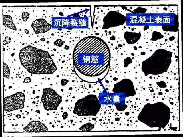 在混凝土粗骨料、鋼筋周?chē)纬伤?,隨著水分的逐漸揮發(fā)形成空隙,從而影響混凝土的致密性、骨料的界面強(qiáng)度以及混凝土與鋼筋間的握裹力,導(dǎo)致混凝土整體強(qiáng)度的降低?;炷撩谒斐伤苄允湛s是一個(gè)不可逆的變形。泌水引起混凝土的沉降導(dǎo)致混凝土產(chǎn)生塑性裂紋,從而會(huì)降低水泥混凝土的強(qiáng)度。特別是泌水混凝土產(chǎn)生整體沉降,澆注深度大時(shí)靠近頂部的拌合物運(yùn)動(dòng)距離更長(zhǎng),沉降受到阻礙,如遇到鋼筋等障礙時(shí),則產(chǎn)生塑性沉降裂紋,從表面向下直至鋼筋的上方。