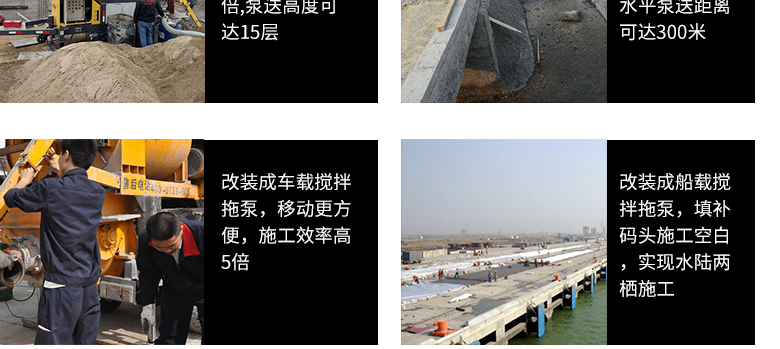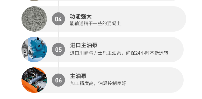 簡介:小型泵車:強(qiáng)制式攪拌拖泵是三民重科在本公司滾筒式攪拌拖泵的基礎(chǔ)上研制而成的第四代產(chǎn)品,該混凝土攪拌拖泵創(chuàng)新地采用了攪拌速度快、混凝土攪拌質(zhì)量好的強(qiáng)制式雙臥軸攪拌,是一種小型混凝土泵車