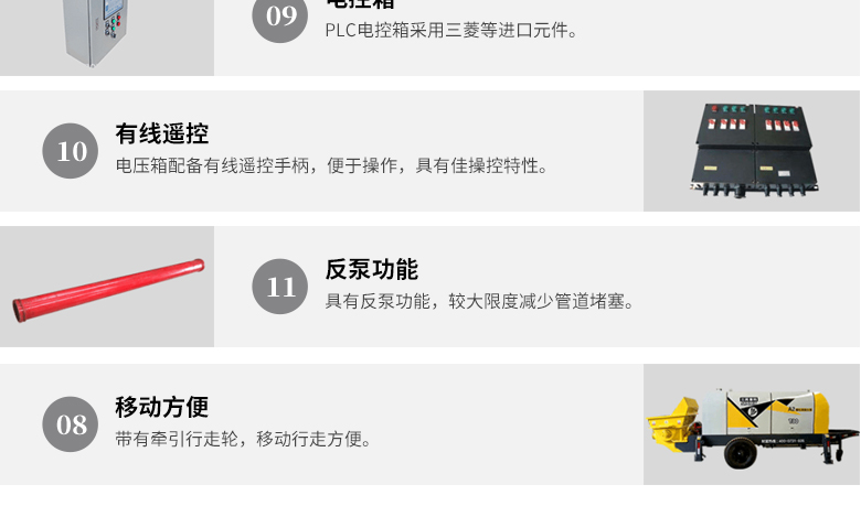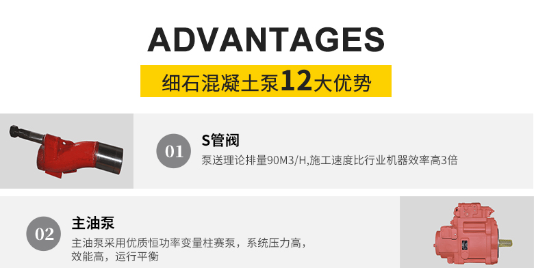 簡介:1、采用先進(jìn)S管閥換向,出口壓力高,能滿足細(xì)石混凝土高層和遠(yuǎn)距離輸送 2、主油泵采用優(yōu)質(zhì)恒功率變量柱賽泵,系統(tǒng)壓力高,效能高,運行平衡。