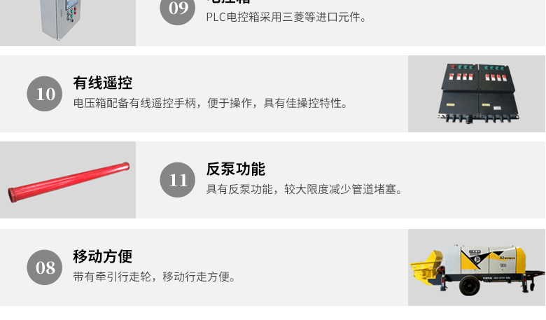 簡(jiǎn)介:1、采用先進(jìn)S管閥換向,出口壓力高,能滿足細(xì)石混凝土高層和遠(yuǎn)距離輸送 2、主油泵采用優(yōu)質(zhì)恒功率變量柱賽泵,系統(tǒng)壓力高,效能高,運(yùn)行平衡。攪拌裝置驅(qū)動(dòng)采用低速大扭矩油壓馬達(dá)。具有反泵功能,大限度減少管道堵塞。