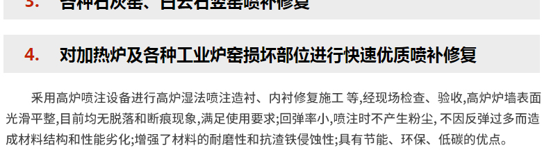 簡(jiǎn)介:三民重科高爐噴注設(shè)備可以實(shí)現(xiàn):高爐本體自動(dòng)化噴補(bǔ)修復(fù);各種石灰窯、白云石豎窯噴補(bǔ)修復(fù);對(duì)加熱爐及各種工業(yè)爐窯損壞部位進(jìn)行快速優(yōu)質(zhì)噴補(bǔ)修復(fù);纖維噴涂等。能夠抵抗高爐爐料、渣蝕的沖刷侵蝕,大限度的延長(zhǎng)高爐使用壽命。