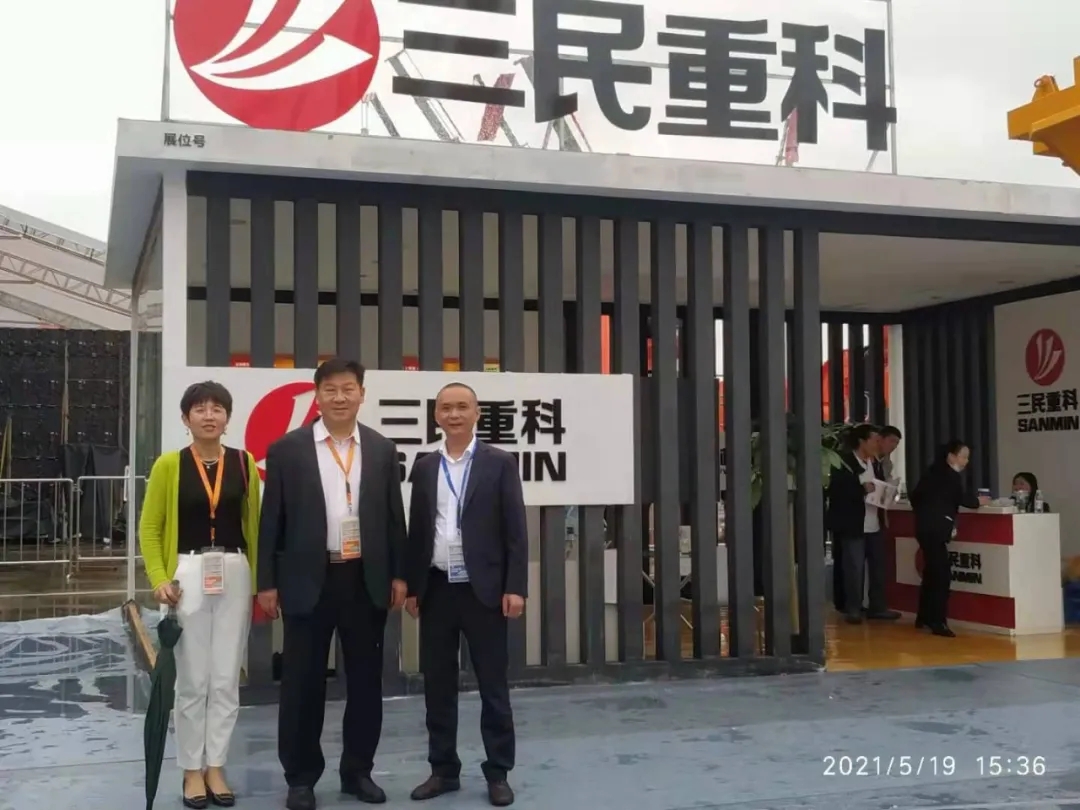 中國混凝土機(jī)械協(xié)會符會長(中間)與三民重科董事長(右)合影