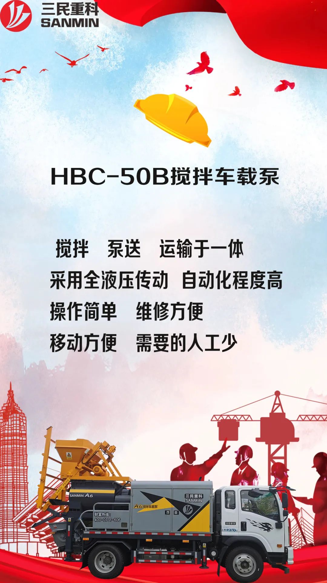 三民重科-主營(yíng)混凝土泵車,小型混凝土泵車,攪拌泵車、攪拌天泵技術(shù)領(lǐng)先!攪拌泵行業(yè)開拓者